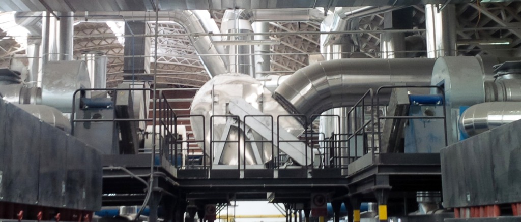 The recovery plant RCE-V type is designed with a centrifugal fan, working with air up to 300°C, for sending the air from the final cooling chimneys up to the vertical dryers.