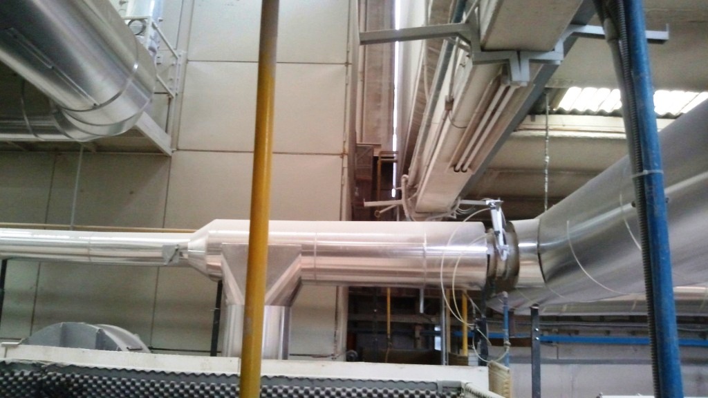 For each dryer, the feeding is done by means of a pipe that sends the air either to the left or to the right panel of the dryer and by means of another pipe that feeds the dryer burner.